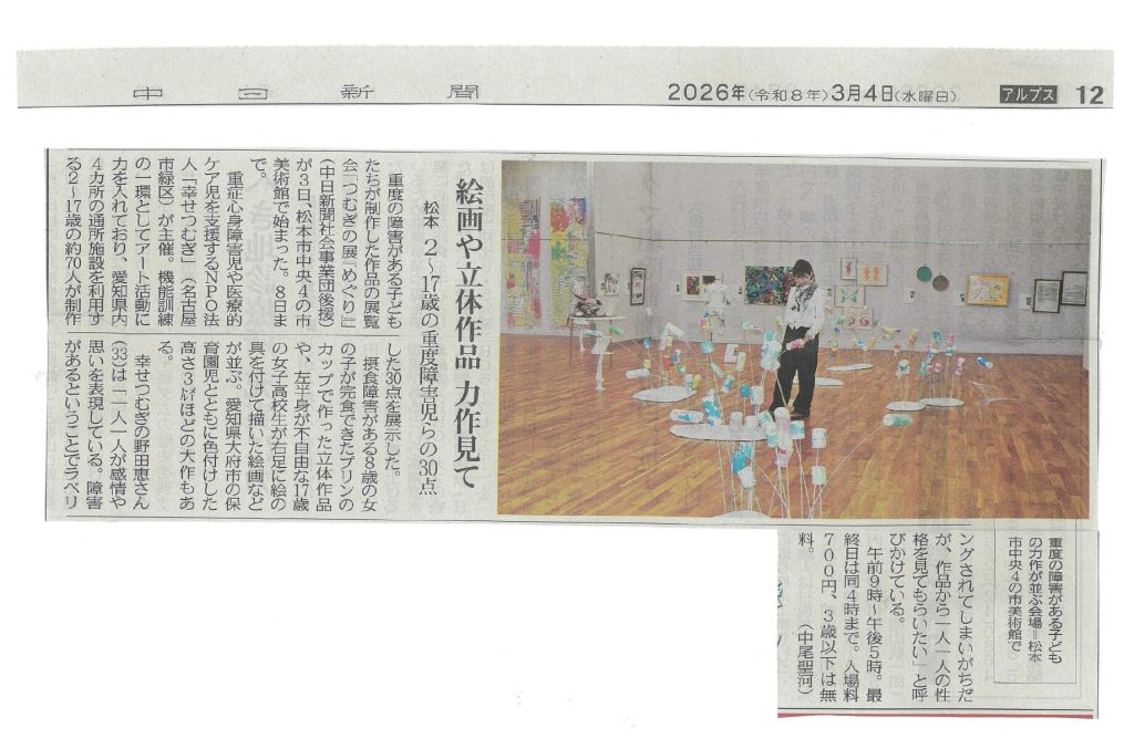 この度、中日新聞(3月4日付)および市民タイムス(3月7日付)に本展の様子をご掲載いただきました。