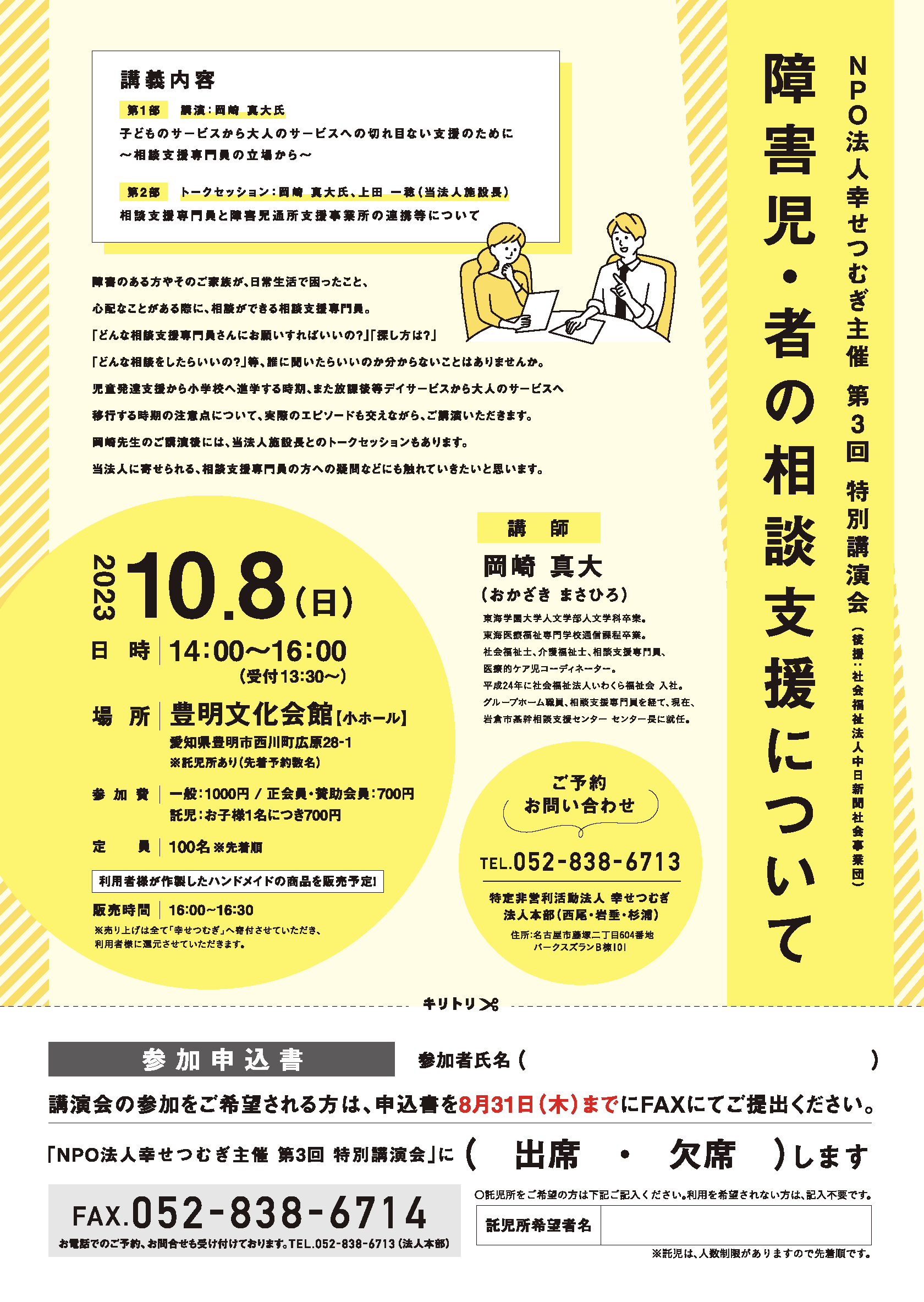 10月8日、岩倉市基幹相談支援センター長の岡崎真大氏をお招きし、第3回特別講演会を開催しました 。